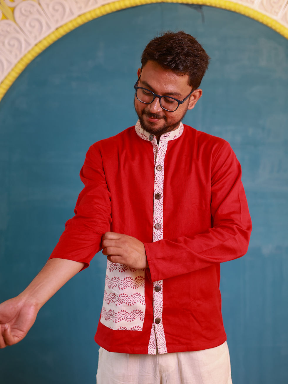 Alpona Laal Men's Short Kurta